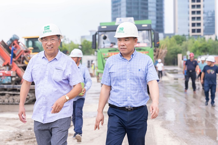 入伏以来、连日高温,灵康国际大厦项目施工现场温度一度升至40摄氏度以上。集团董事长陶灵萍时刻牵挂奋战在项目建设一线的员工及建筑工人,对高温条件下项目施工进展情况提出明确要求,并专门安排了一线慰问送清凉活动。7月26日下午,灵康控股集团副总裁蒋建中、副总裁杨栋、总工程师陶禄缘等,来到项目施工现场,慰问一线工作人员。